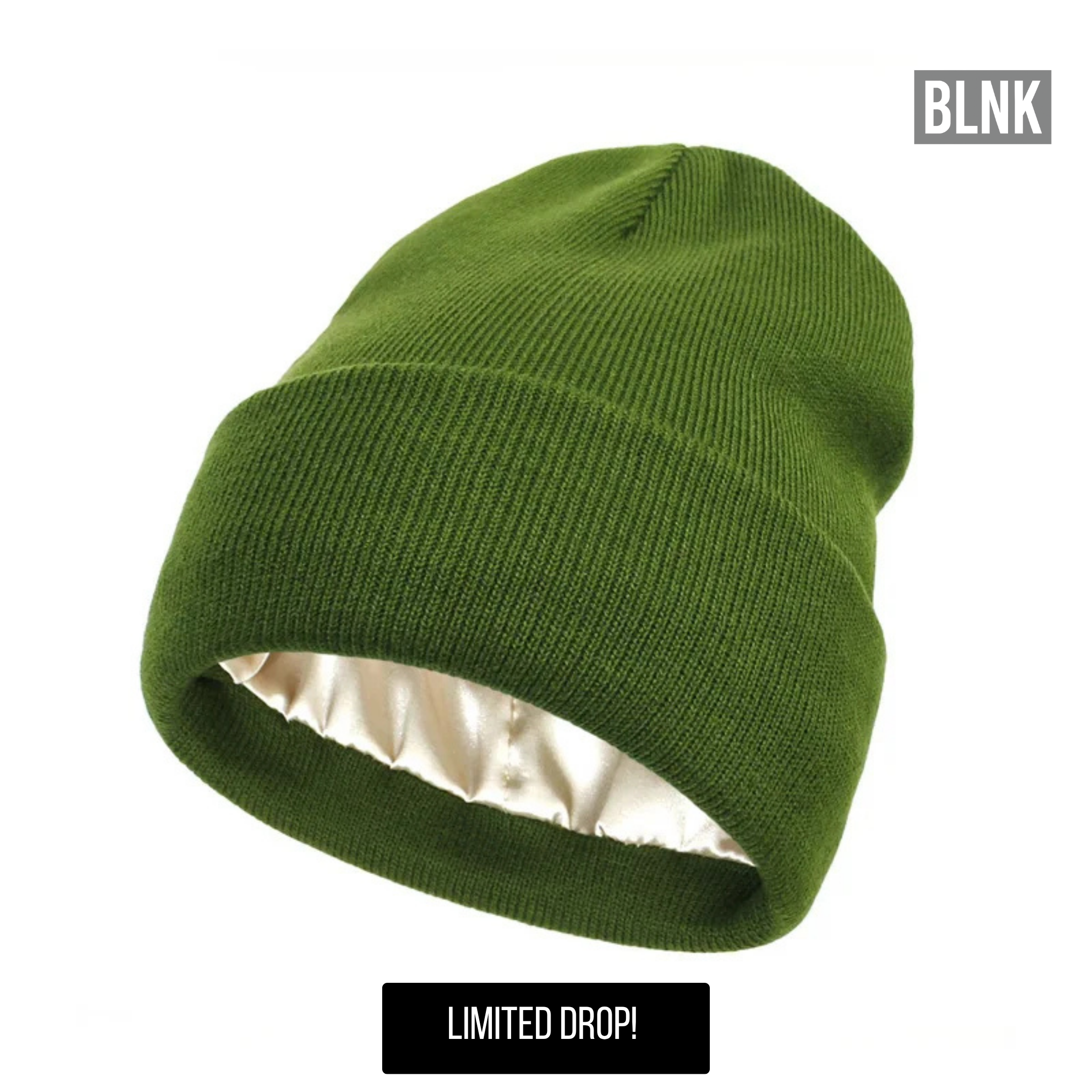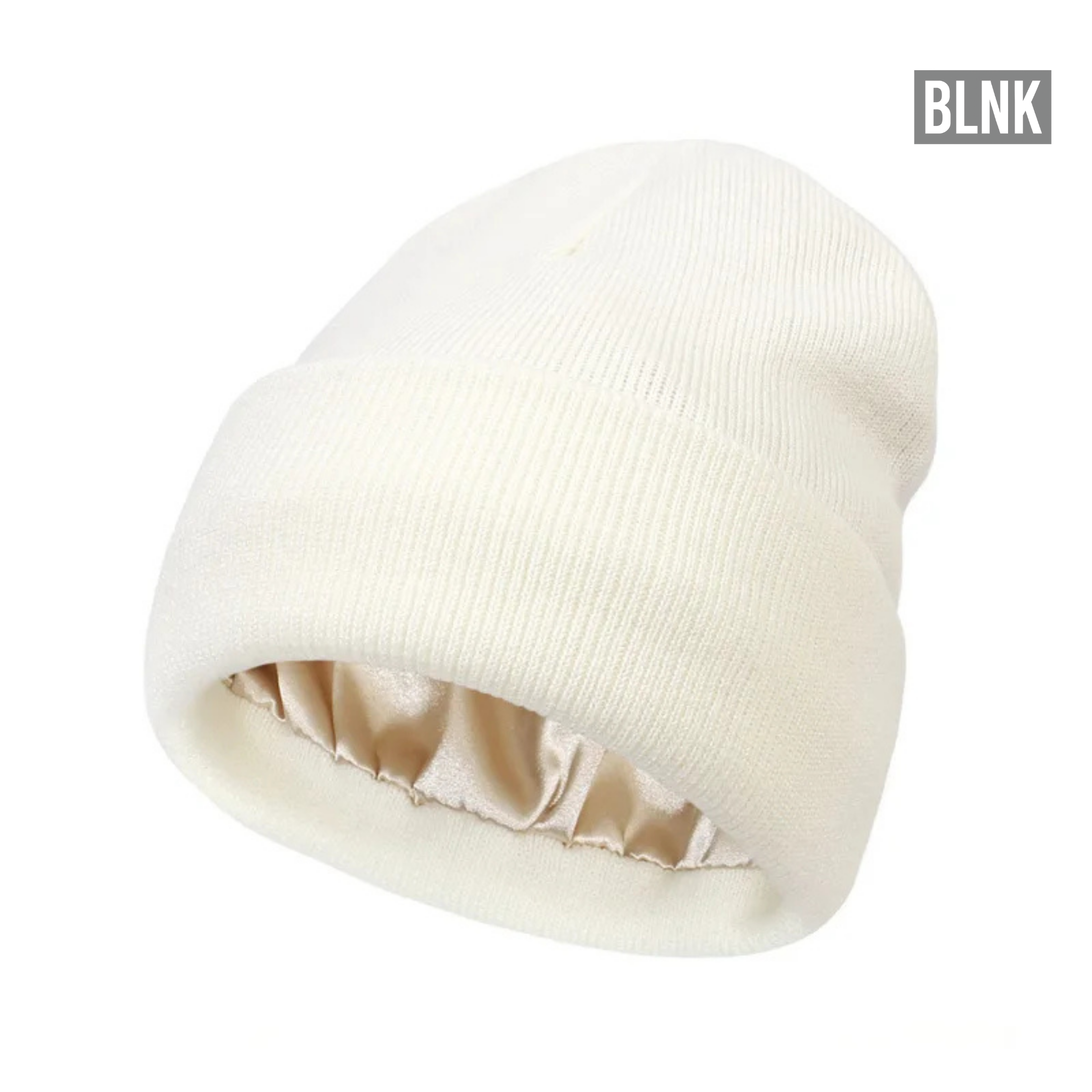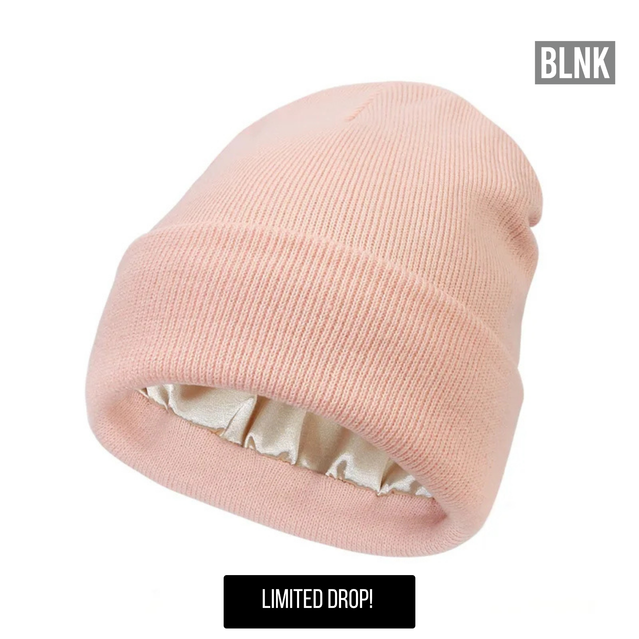 A BLNK sapka prémium, rugalmas kötött anyagból készült, belül selyemhatású szatén béléssel.